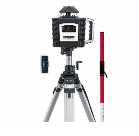 Láser de rotación + Receptor láser Sensolite 410 + Soporte universal + Mando a distancia + Batería + Cargador + Trípode de manivela P 260 cm + Mira Flexi Plus + Maletín de transporte
